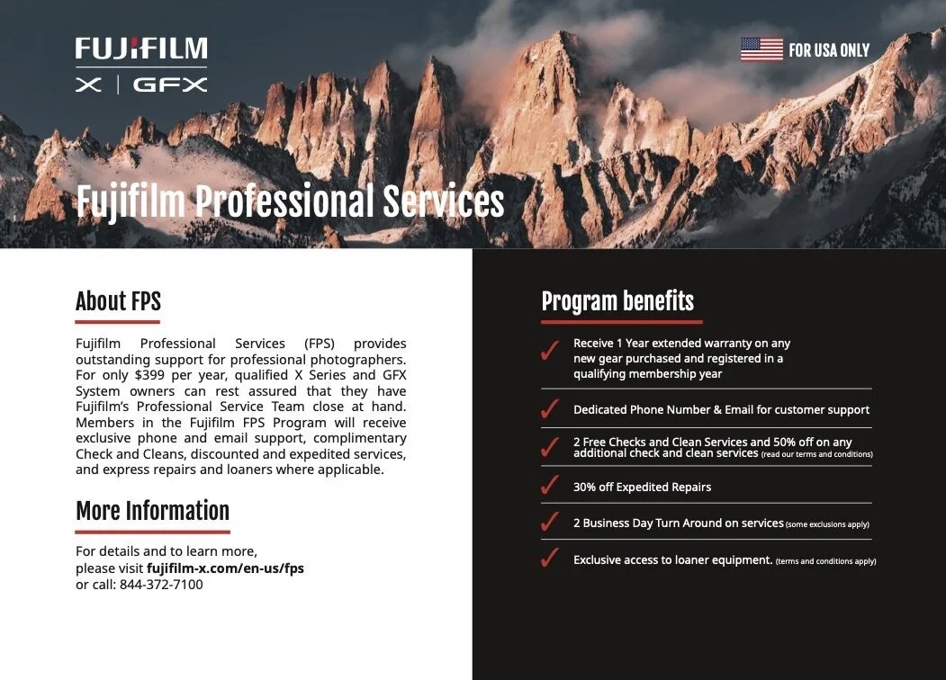 While completely switching brands and styles of photography, I was disappointed that this type of program was only available to overseas shooters. My contacts at Fujifilm assured me that this program would be coming soon. And to kick it off, join NOW and get this elite membership for a 50% discount.