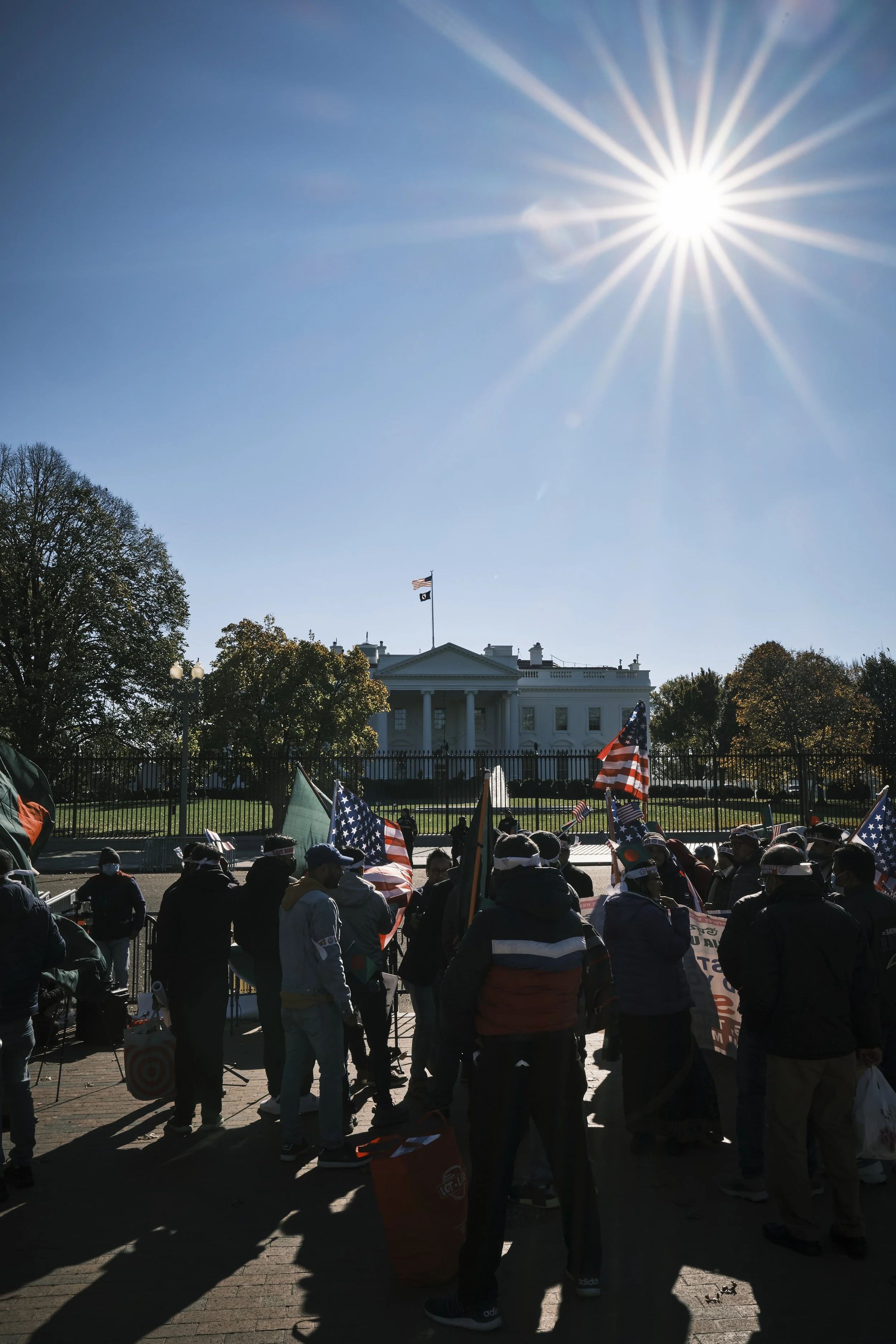 As quickly as the small group was in place, another group could be heard in the distant heading to join. Within a span of 30 minutes, the area was filled with several Hindu support groups with banners, drums, loud speakers and chants - all screaming their message towards the leader of the free world demanding action. As quickly as the group gathered and increased in numbers, my photojournalist training and instinct kicked into overdrive. This must be documented even if just for me. I would later reach out to one of their members that seemed in charge to share my captures in hope to assist the group in gaining visibility in the media market.
